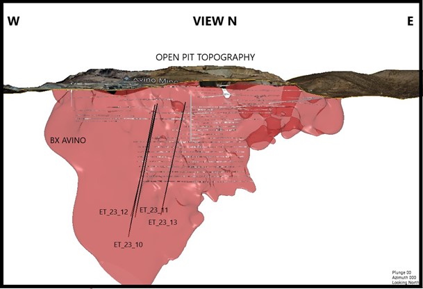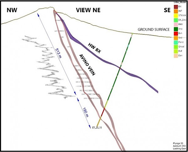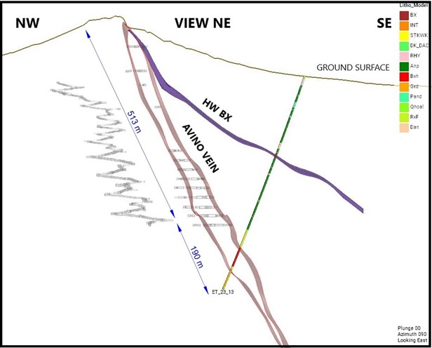 Figure 3 –Cross-Section of ET-23-13 showing the substantial width of the Avino vein at the drill hole intersection.