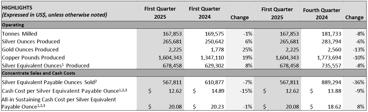 The financial results in this news release include references to non-IFRS Accounting Standards measures. These measures are used by the Company to manage and evaluate the operating performance of the Company’s mining operations and are widely reported in the silver and gold mining industry as benchmarks for performance, but do not have standardized meanings prescribed by IFRS. For a reconciliation of non-GAAP and GAAP measures, please refer to the “Non-IFRS Accounting Standards Measures” section of the Company’s MD&A dated May 13, 2025 for the three months ended March 31, 2025, which is incorporated by reference within this news release and available on SEDAR+ at www.sedarplus.ca.
