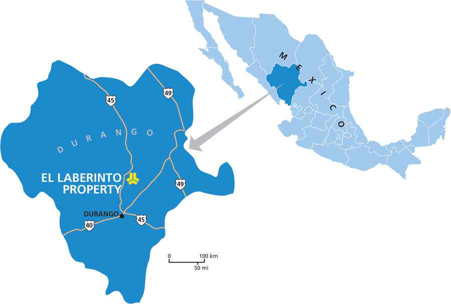 The El Laberinto property is located approximately 25 km west-northwest of the Avino property between Coeur Mining’s La Preciosa silver project and Oremex’s San Lucas property near the town of Flores Magon. The property is situated within the Magon Caldera in the central portion of the northwest trending Sierra de la Silla horst.